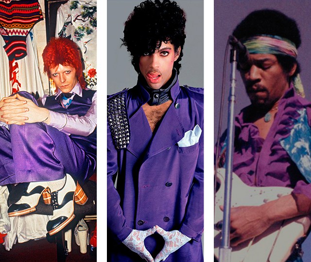 Trois légendes de la pop-culture adeptes de cette couleur ultra violet.Prince et Bowie tous deux décédés en 2016 et portaient cette couleur jugée parfois comme étant un peu trop excentrique par certains..